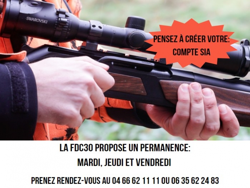 - Prendre obligatoirement rdv par téléphone au 06.35.62.24.83 ou par mail à : sia@fdc30.fr