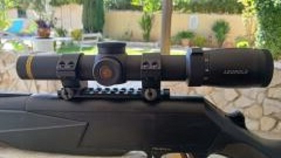 Cause double emploi, Lunette de battue LEUPOLD VX-5HD Grossissement 1-5 X 24 avec réticule lumineux à 5 positions et arrêt automatique. Diamètre du tube 30 mm. Vendue avec 2 colliers de fixation sur rail. Parfait état.